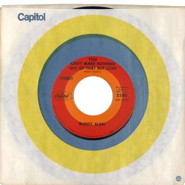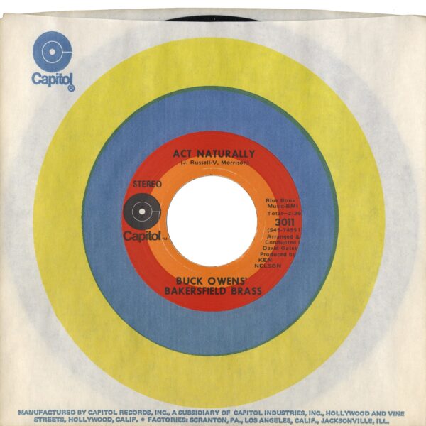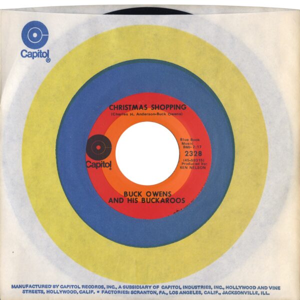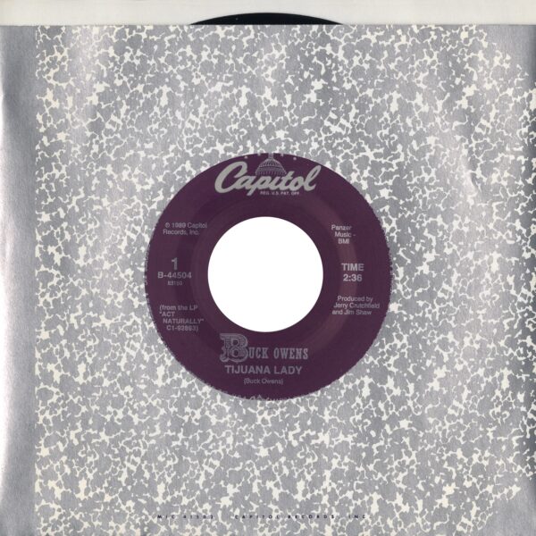 Gold Record Award – Buck OwensSanto Domingo /That’s Quite A Ride – Buddy AlanDown In New Orleans /I’ve Never Had A Dream Come True Before – Buddy AlanI’m In Love /The Happiness Song – Buddy AlanFishin’ On The Mississippi /If I Could Love You More – Buddy AlanThings /One Good Woman – Buddy AlanI Will Drink Your Wine /Doin’ The Best I Can – Buddy AlanLookin’ Out My Back Door /Corn Liquor – Buddy AlanYou Can’t Make Nothing Out Of That But Love /Alabama, Louisiana, Or Maybe Tennessee – Buddy AlanWhite Line Fever /Another By Your Side – Buddy AlanRide ‘Em Cowboy /Still The One – Buddy AlanI’m On The Road To Memphis /I’ll Be Swingin’ Too – Buddy Alan & Don RichCowboy Convention /We’re All Gonna Get Together – Buddy Alan & Don RichAct Naturally /My Heart Skips A Beat – Buck Owens’ Bakersfield BrassCajun Brass /Waitin’ In Your Welfare Line – The Bakesfield California BrassA Whole Lot Of Somethin’ /Nobody’s Fool But Yours – Tony BoothLas Virgenes Road /Give Me One Last Kiss And Go – Tony BoothIrma Jackson /[blank side] [test pressing] – Tony BoothToo Old To Cut The Mustard /Wham Bam – Buck & BuddyAnywhere U.S.A. /Gathering Dust – The BuckaroosCountry Pickin’ /Rompin’ And Stompin’ – The BuckaroosI’m Coming Back Home To Stay /I Can’t Stop (My Loving You) – Buck Owens’ BuckaroosI’m Miles Away /Loony Cabosse – The HagersLiving Tornado /More Than Just A Friend – Sharon HaleyRiding My Memory-Go-Round /You Won’t Be Happy ‘Till I’m Sad – Sharon HaleyOne More Mountain To Climb /Just Another Girl – Freddie Hart *Got The All Overs For You (All Over Me) /Just Another Girl – Freddie HartThe Whole World Holding Hands /Without You – Freddie HartBless Your Heart /Conscience Makes Cowards (Of Us All) – Freddie HartMy Hang-Up Is You /Big Bad Wolf – Freddie HartSuper Kind Of Woman /Mother Nature Made A Believer Out Of Me – Freddie HartFingerprints /I Can’t Keep My Hands Off Of YOu – Freddie HartBlue Christmas /I Believe In Santa Claus – Freddie HartCalifornia Grapevine /What’s Wrong With Your Head, Fred – Freddie HartI’m A Natural Loser /The Biggest Storm Of All – Doyle HollyI’ll Be All Right Tomorrow /Cinderella – Doyle HollyGoodtime Baby (Mono) /Goodtime Baby (Stereo) – LaWanda LindseyThings I Saw Happening At The Fountain On The Plaza When I Was Visiting Rome Or Amore /Turkish Holiday – Buck Ownes accompanied by The BuckaroosSanta Looked A Lot Like Daddy /All I Want For Christmas Dear Is You – Buck OwensCountry Singer’s Prayer /Meanwhile Back At The Ranch – Buck OwensToys For Tots /Toys For Tots – Buck Owens /Toys For Tots – Peggy Lee41st Street Lonely Hearts’ Club /Weekend Daddy – Buck OwensWeekend Daddy (Mono) /Weekend Daddy (Stereo) – Buck OwensOpen Up Your Heart /No More Me And You – Buck OwensWhere Does The Good Times Go /The Way That I Love You – Buck Owens And His BuckaroosThe Battle Of New Orleans (Mono) /The Battle Of New Orleans (Stereo) – Buck OwensRollin’ In My Sweet Baby’s Arms /Corn Likker – Buck OwensArms Full Of Empty /Songwriter’s Lament – Buck OwensChristmas Shopping /One Of Everything You Got [1st Pressing] – Buck Owens And His BuckaroosChristmas Shopping /One Of Everything You Got [2nd Pressing] – Buck Owens And His BuckaroosBig Game Hunter /That Loving Feeling – Buck OwensPlay Together Again Again (Mono) /Play Together Again Again (Stereo) – Buck OwensHangin’ In And Hangin’ On /Sweet Molly Brown’s – Buck OwensHollywood Waltz (Mono) /Hollywood Waltz (Stereo) – Buck OwensTijuana Lady /Brooklyn Bridge – Buck OwensTall Dark Stranger /Sing That Kind Of Song – Buck OwnesSweet Rosie Jones /Happy Times Are Here Again – Buck Owens And His BuckaroosYou Ain’t Gonna Have Ol’ Buck To Kick Around No More /I Love You So Much It Hurts – Buck Owens And The BuckaroosRuby (Are You Mad) /Heartbreak Mountain – Buck Owens And His BuckaroosI Wouldn’t Live In New York City (If They Gave Me The Whole Dang Town) /No Milk And Honey In Baltimore – Buck Owens And His BuckaroosThe Kansas City Song /I’d Love To Be Your Man – Buck Owens And His BuckaroosI’ve Got You On My Mind Again /That’s All Right With Me (If It’s All Right With You) – Buck Owens And His BuckaroosHot Dog /Second Fiddle – Buck OwensKickin’ In /Kickin’ In – Buck OwensLet Jesse Rob The Train /Victim Of Life’s Circumstances – Buck OwensWithout You /Love Don’t Make The Bars – Buck OwensCalifornia Okie (Mono) /California Okie (Stereo) – Buck OwensOur Old Mansion (Mono) /Our Old Mansion (Stereo) – Buck OwensLove Is A Warm Cowboy (Mono) /Love Is A Warm Cowboy (Stereo) – Buck OwensMoonlight And Magnolia (Mono) /Moonlight And Magnolia (Stereo) – Buck OwensThe World Famous Holiday Inn (Mono) /The World Famous Holiday Inn (Stereo) – Buck OwensThe World Famous Paradise Inn (Mono) /The World Famous Paradise Inn (Stereo) – Buck OwensLet The Good Times Roll (Mono) /Let The Good Times Roll (Stereo) – Buck OwensIt’s Been A Long, Long Time (Mono) /It’s Been A Long, Long Time (Stereo) – Buck OwensDo You Wanna Make Love (Mono) /Do You Wanna Make Love (Stereo) – Buck OwensNights Are Forever Without You (Mono) /Nights Are Forever Without You (Stereo) – Buck OwensLooking Back To See /Cryin’ Time – Buck Owens & Susan RayeLove Is Strange /Sweethearts In Heaven – Buck Owens & Susan RayeThe Great White Horse /Your Tender Loving Care – Buck Owens & Susan RayeTogetherness /Fallin’ For You – Buck Owens & Susan RayeSanta’s Gonna Come In A Stagecoach /One Of Everything You Got – Buck Owens & Susan RayeWe’re Gonna Get Together /Everybody Needs Somebody – Susan RayeOne Night Stand /She Don’t Deserve You Anymore – Susan RayeA Song To Sing /Adios, Farewell, Good-bye, Good Luck, So Long – Susan Raye(I’ve Got A) Happy Heart /How Long Will My Baby Be Gone – Susan RayeWilly Jones /I’ll Love You Forever (If You