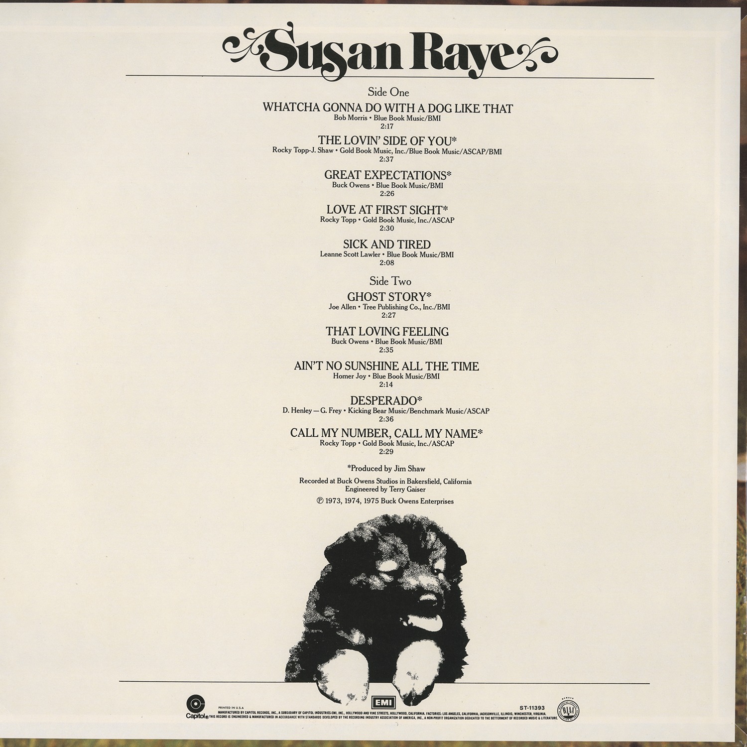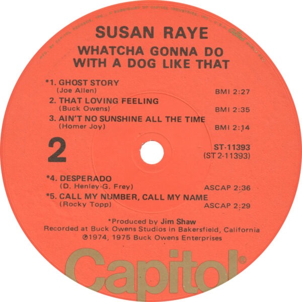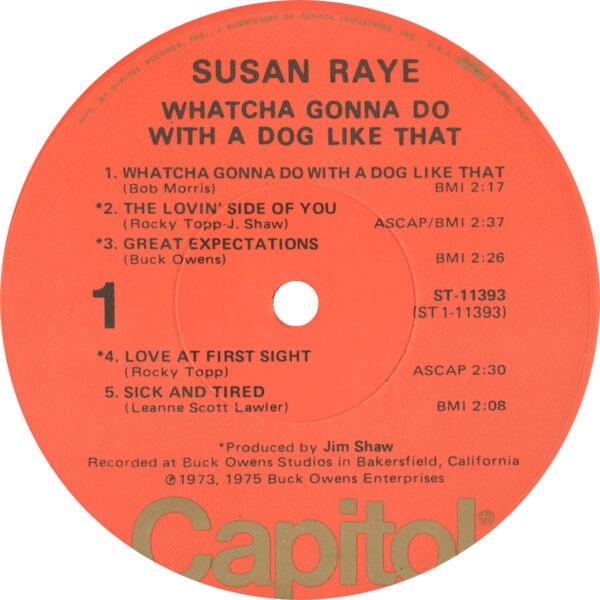 Available while supplies last, original vintage LP pressing of Susan Raye’s Whatcha Gonna Do With A Dog Like That. Direct from the vaults at the Crystal Palace, this sealed LP is from Buck’s original stock. Each record includes a certificate of authenticity.